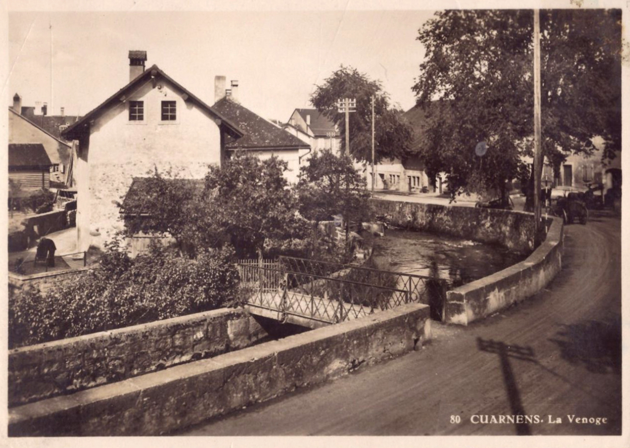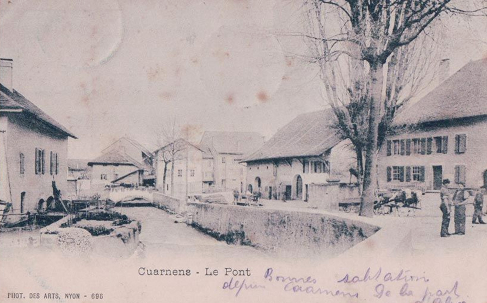 Dès 1126, des moines de l’ordre de Prémontré arrivent à la Vallée de Joux et firent construire à Cuarnens un établissement pourvu de droit substantiel et de terre : le domaine de la Grange (porte 1637).